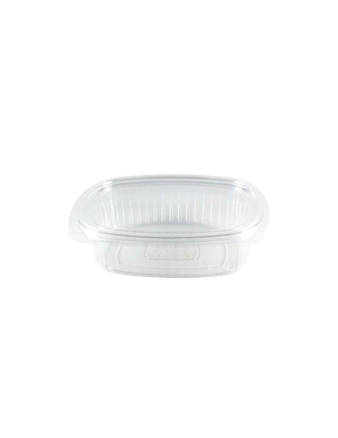 Su diseño oval con tapa de bisagra facilita la apertura y el cierre, aportando comodidad tanto al cliente como al profesional. El cierre es firme, evitando aperturas accidentales durante el transporte. Gracias a su transparencia cristalina, el contenido se muestra de forma limpia y atractiva, potenciando la venta por impulso en vitrinas, buffets y mostradores.