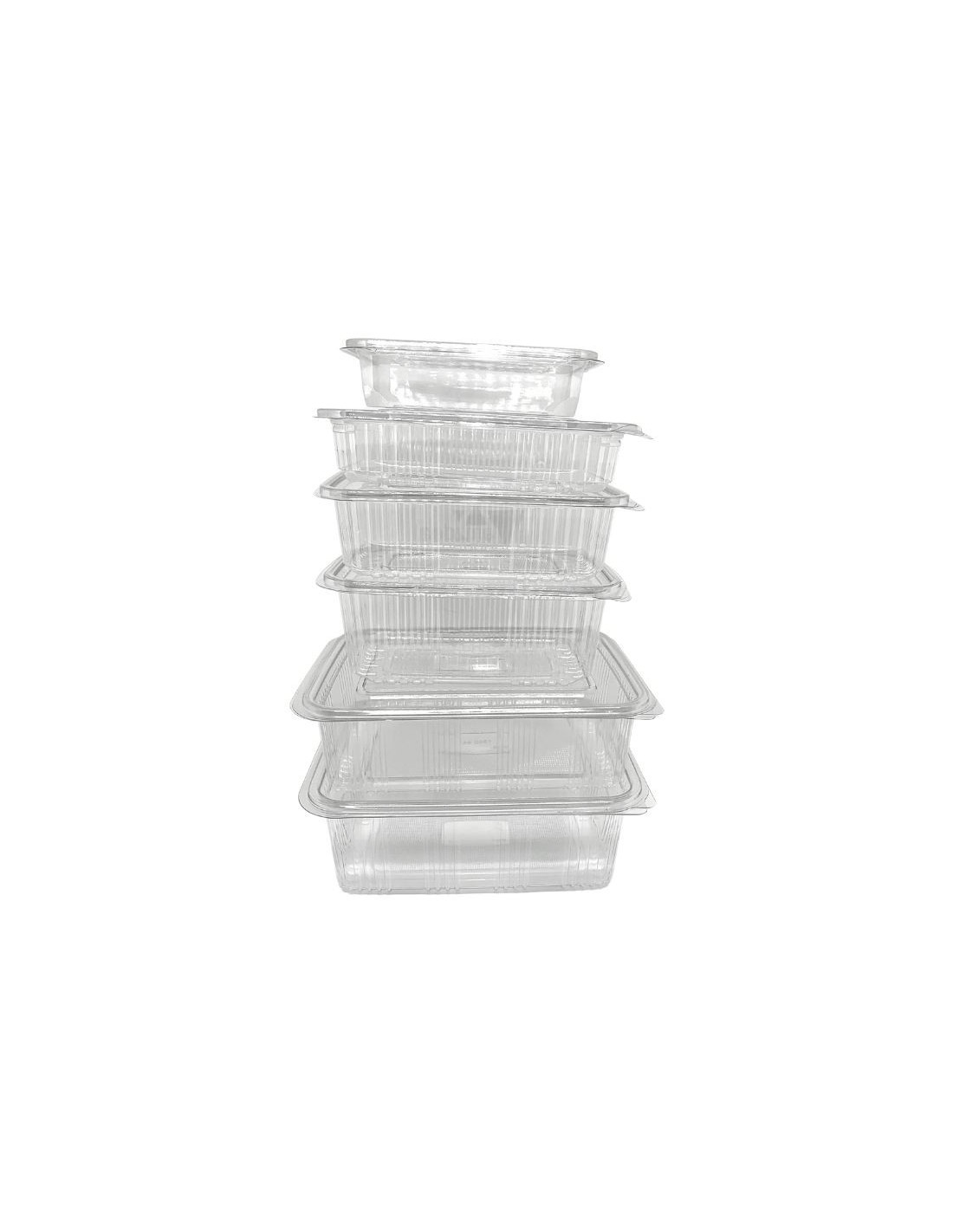 El envase bisagra PET está disponible en varios tamaños en capacidades en nuestra página web para que puedas elegir el que más cubra tus necesidades.