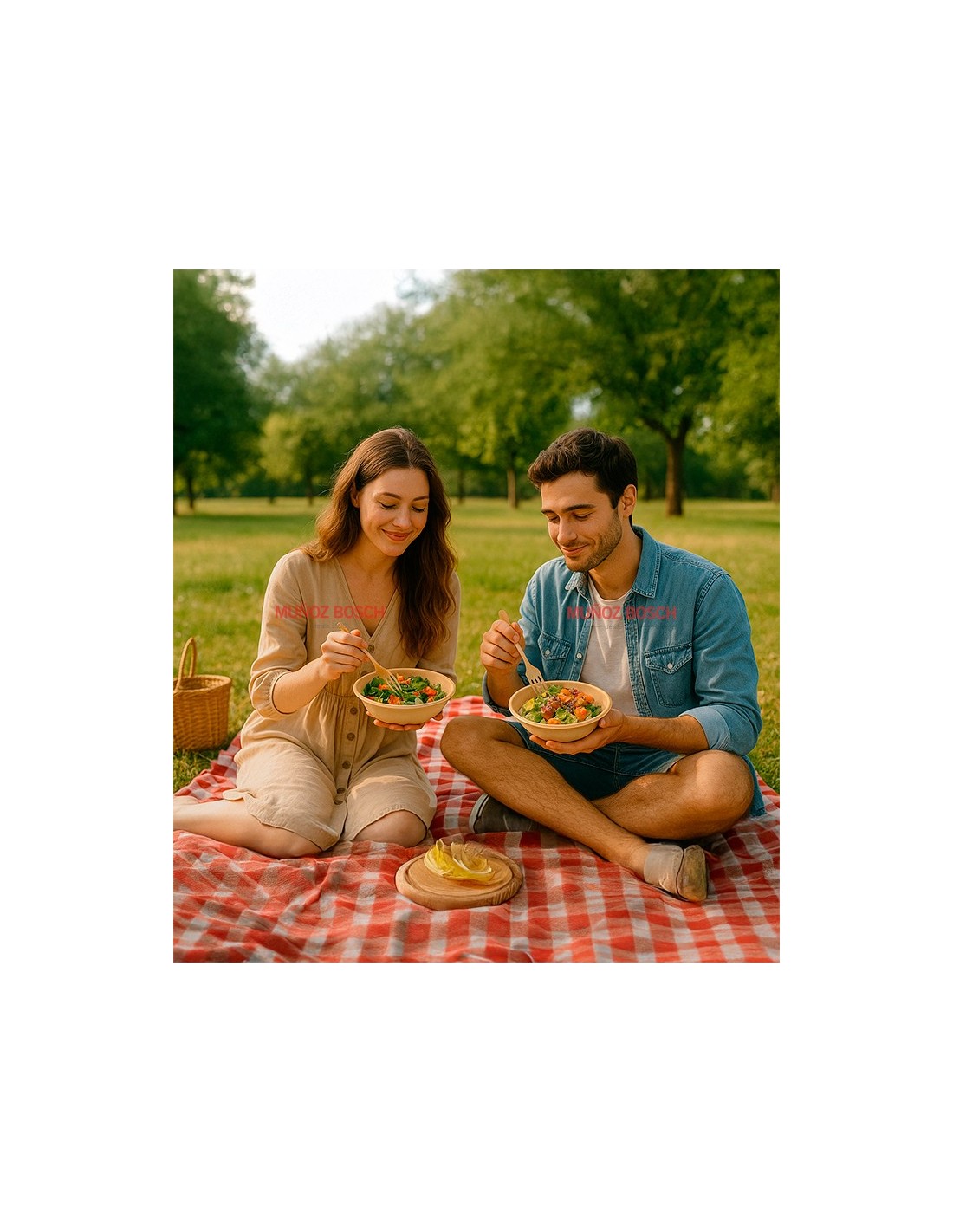 La ensaladera de bagazo está producida a partir de un material proveniente de la caña de azúcar, biodegradable y reciclable. Es ligera y antigrasa, así que puedes transportar tu ensalada cómodamente sin posibilidad de que la grasa del aceite traspase al exterior. La ensaladera de bagazo de 950ml es Ideal para disfrutar tu ensalada cómoda y ligeramente allá donde vayas. Y lo más importante, es 100% ecológica.