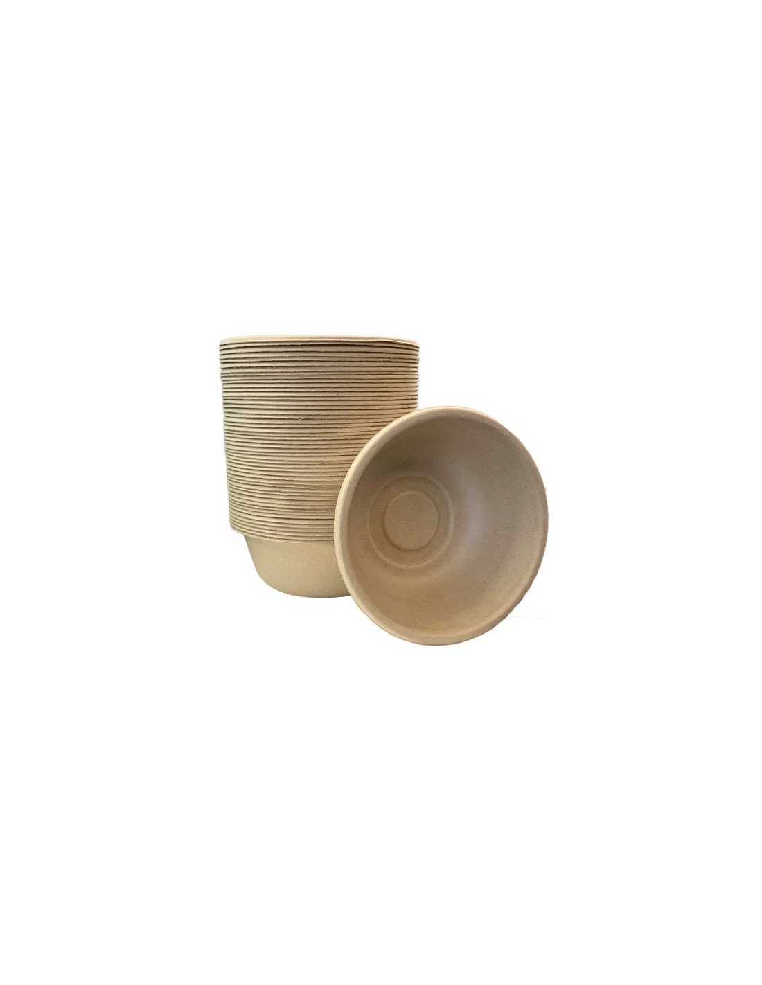 Tarrina de bagazo con una capacidad de 55ml, elaborada a partir de caña de azúcar idónea para líquidos, como las salsas, presentados en cáterings y en comidas “take away”.