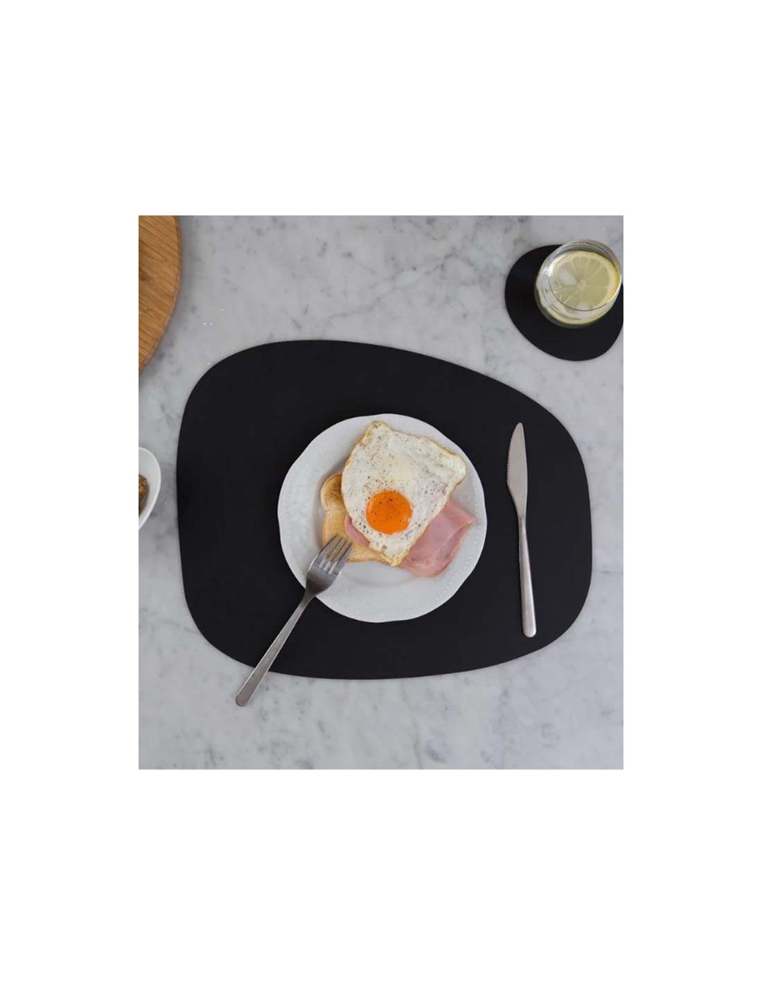 El mantel individual Piedra negro acabados en cuero reciclado de color negro ofrece un toque elegante a su mesa.