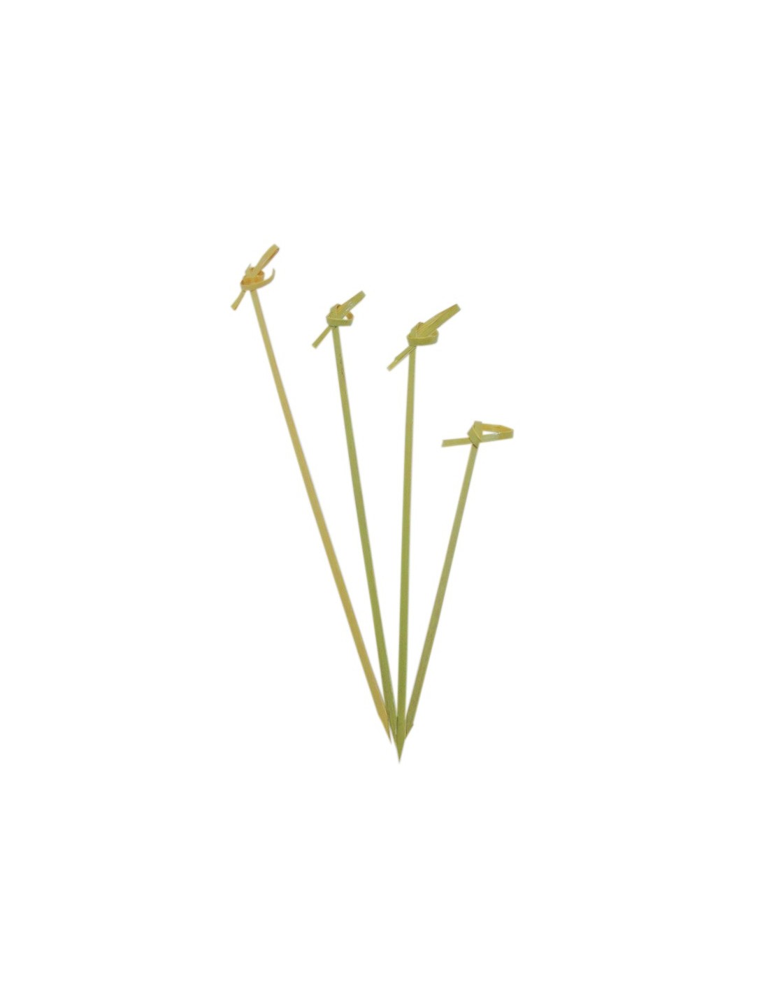 La brocheta de bambú con lazo es una brocheta producida con bambú, lo que es biodegradable, compostable y reciclable. La brocheta de bambú con lazo lleva un lazo en su parte superior, anudado con el mismo bambú, lo que aporta a las creaciones culinarias, pinchos, tapas y aperitivos un toque 100% natural y además elegante. La brocheta de bambú con lazo también se caracteriza por ser resistente e higiénica, no dejando ningún sabor a la comida. Es ideal para cáterings, buffets, eventos, fiestas y celebraciones, una forma alternativa y sostenible de presentar tus creaciones gastronómicas. La puedes encontrar en varias medidas para tener más opciones que se ajusten a lo que necesites.