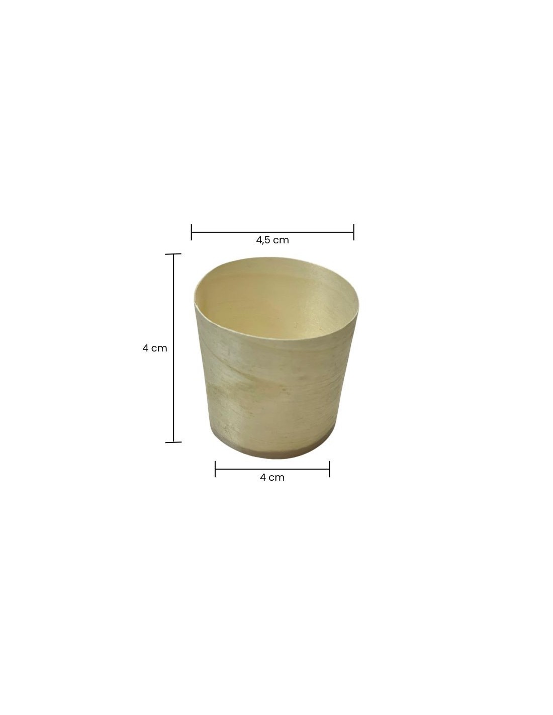 El mini vaso madera es una de las presentaciones para tus creaciones culinarias de lo más ecológica y sostenible además de única. El mini vaso madera está fabricado con hojuela de pino materia prima 100% natural biodegradable, resistente a los líquidos y grasas. El mini vaso madera es un recipiente idóneo para presentar tapas, pinchos, salsas, algún condimento, aperitivos. Perfecto para cáterings, eventos, “FoodTrucks” y cualquier celebración donde la sostenibilidad y naturaleza siempre estará presente en este mini vaso. Disponible en dos medidas diferentes, capacidad para 30 o 50ml