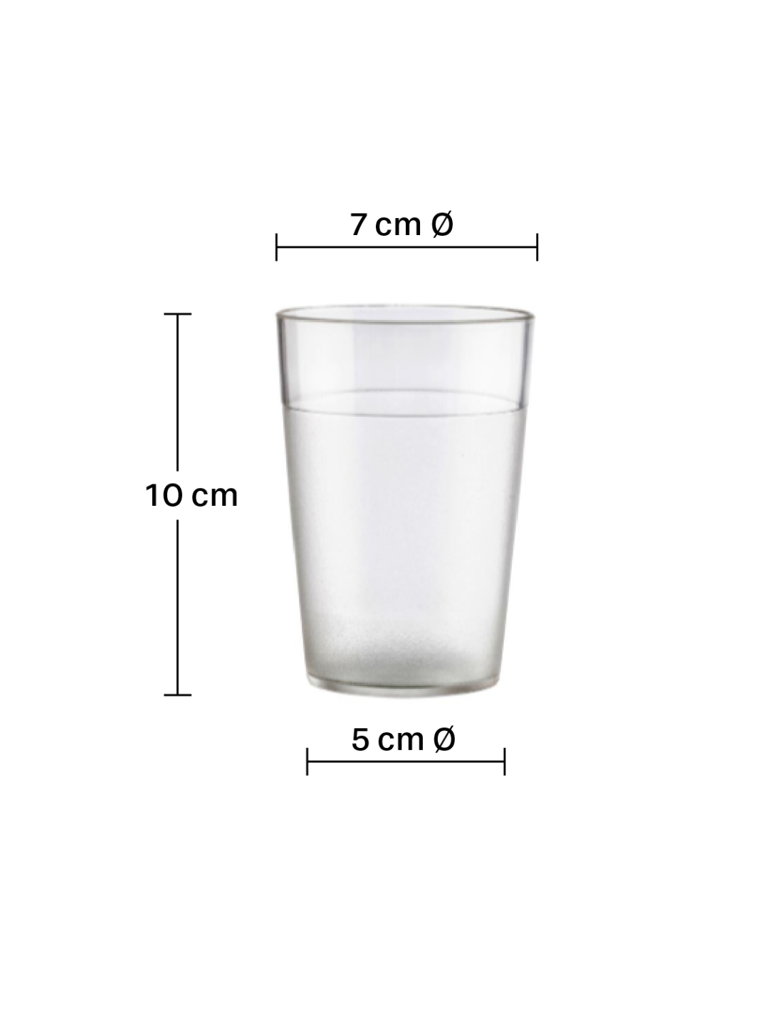 El vaso policarbonato 250cc está acabado en policarbonato sin BPA muy resistente, ligero y duradero. ¡Perfecto para eventos al aire libre!