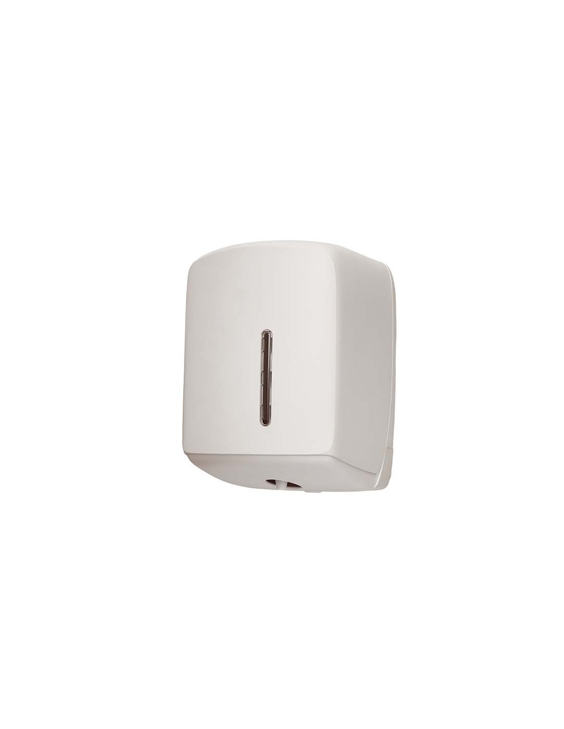 El Dispensador secamanos blanco mate Timeless es ideal para ofrecer papel mecha desde su base. ¡Perfecto para establecimientos con alto nivel de rotación!
