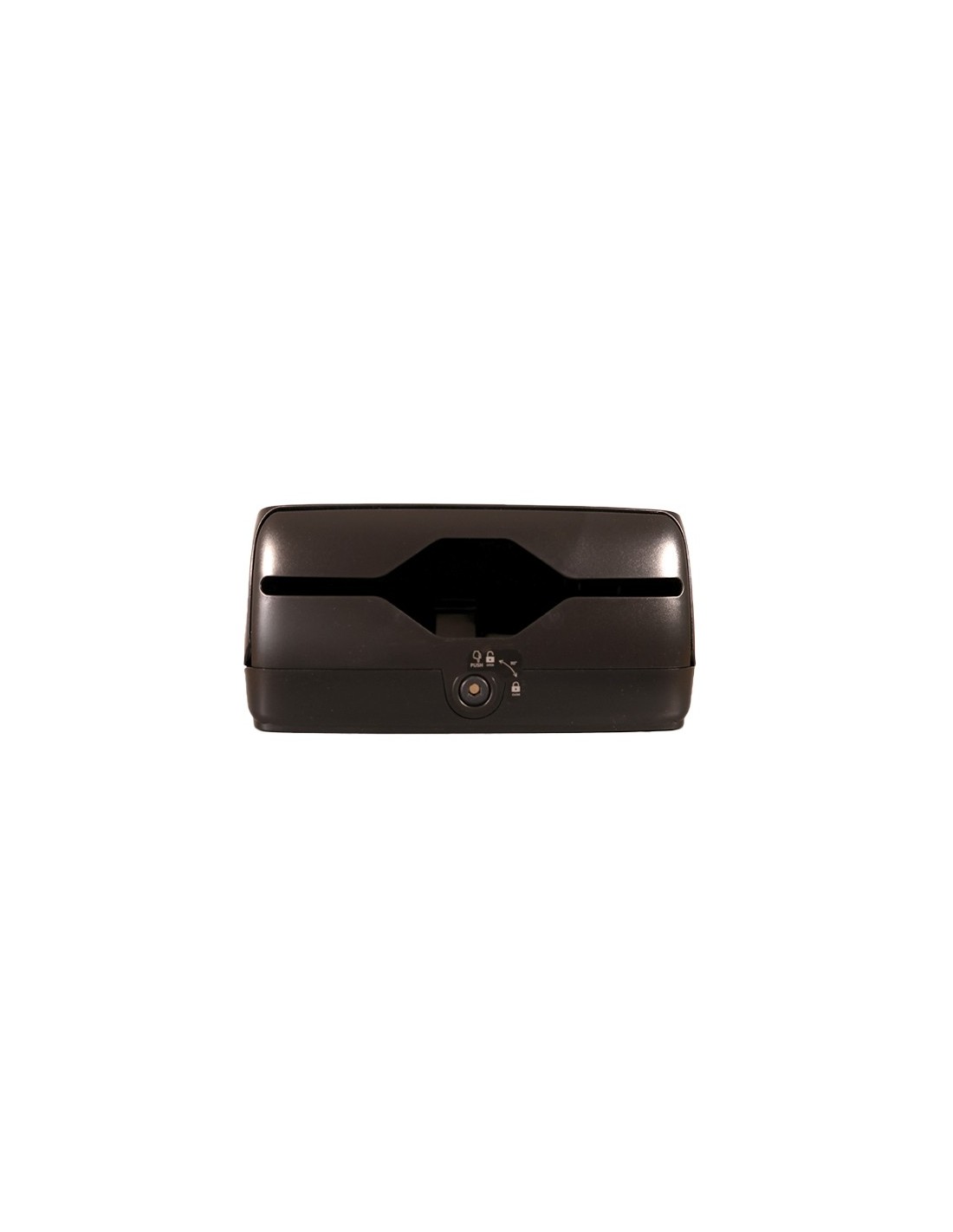 El Dispensador Z-600 Toalla Timeless negro Mubox tiene Cerradura con llave, visor de carga de toallas y frontal abatible. Cuenta, además con sistema dual de apertura.