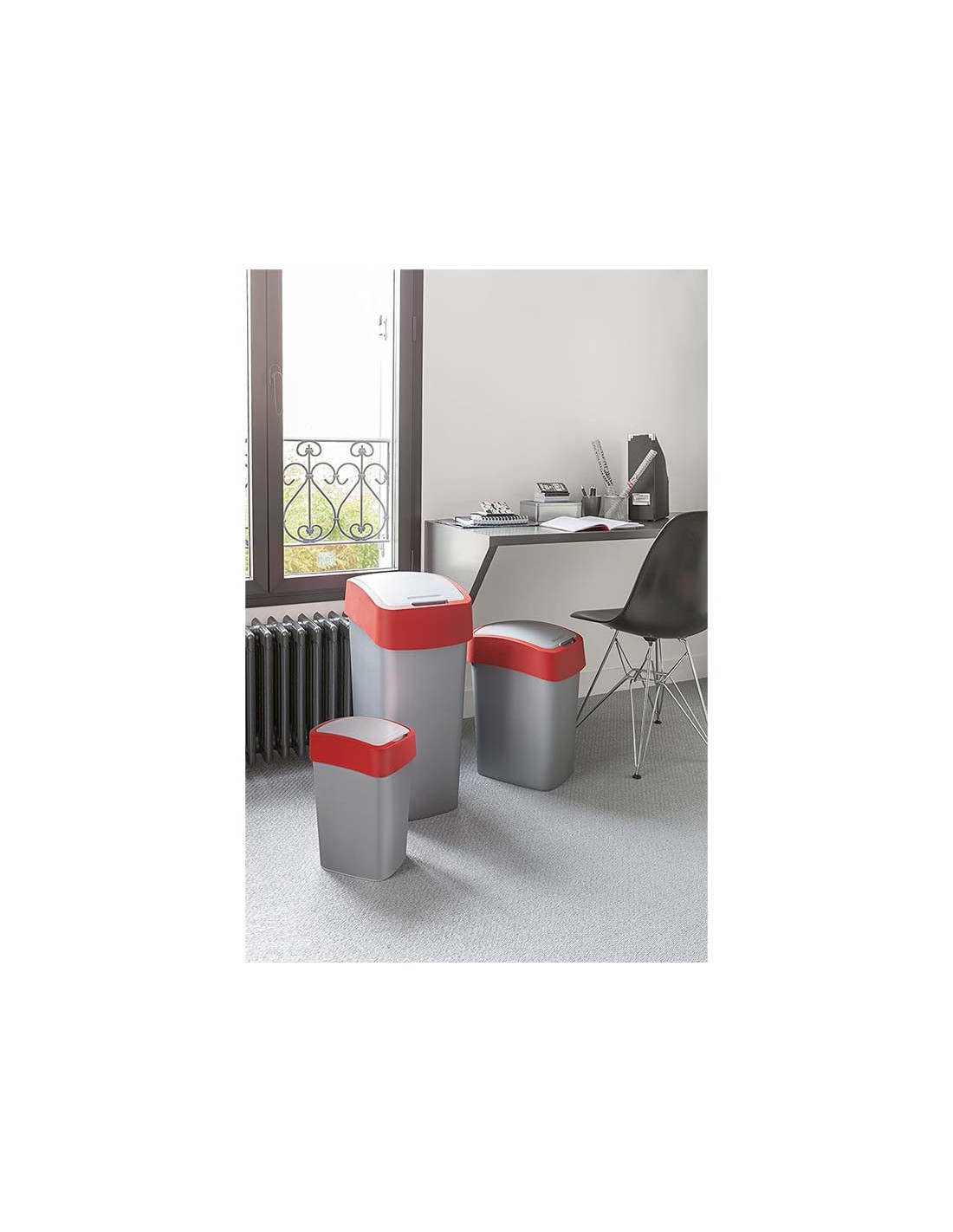 La papelera Pacific flip bin 25L plata y rojo está diseñada en plástico bicolor que combina a la perfección con cualquier tipo de mobiliario y en cualquier tipo de habitación, ya sea una cocina, un dormitorio o un espacio de trabajo. ¡Es muy original, atractiva y cómoda!