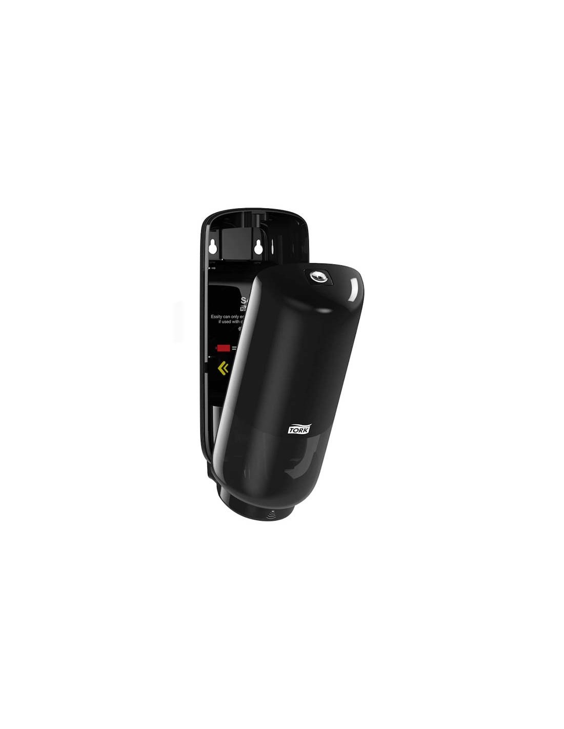 El dispensador jabón y desinfectante Elevation negro S4 TORK es Fiable, fácil de usar, sostenible y compatible con múltiples recambios. Ideal para baños profesionales.