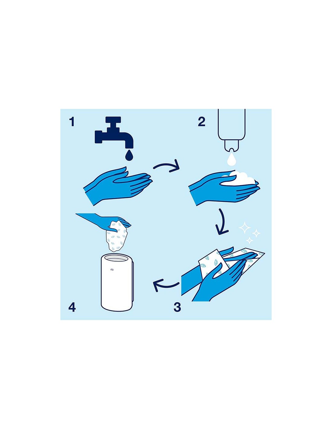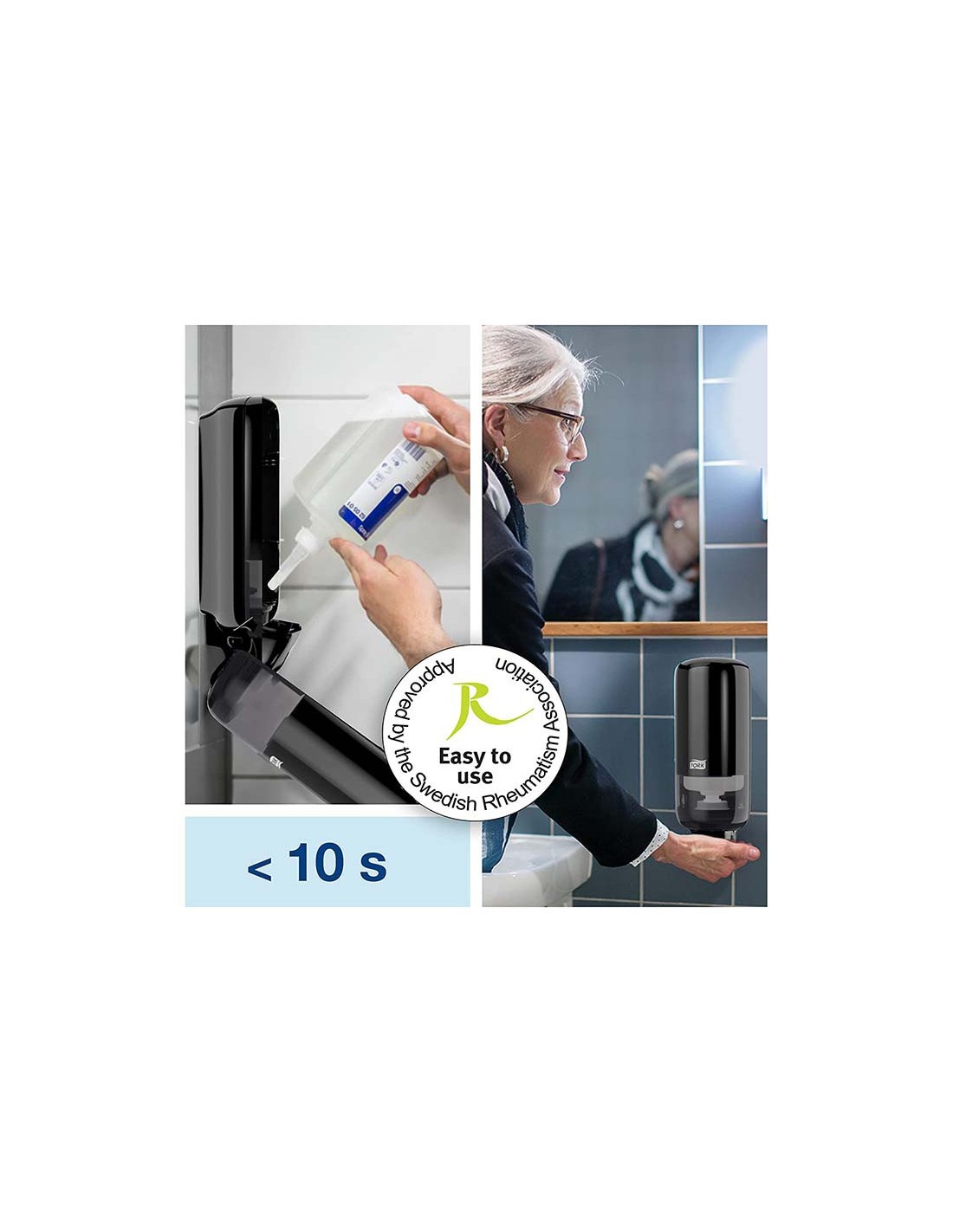 ✓ Compatible con una amplia gama de recambios: funciona con jabones líquidos, en espuma, geles y desinfectantes Tork, todos en envases higiénicos y sellados que reducen el riesgo de contaminación.