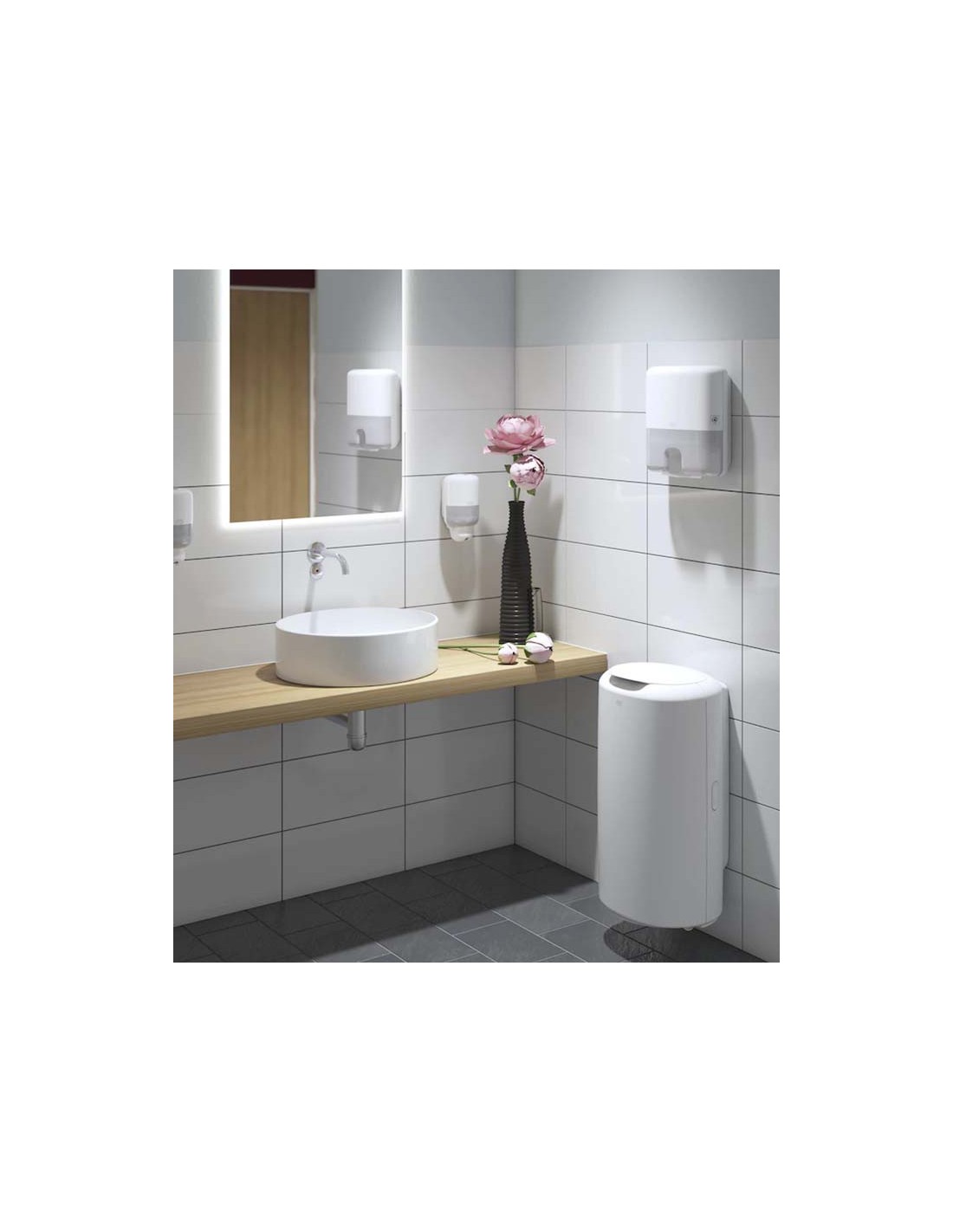 Dosificador jabón smart blanco es un dosificador de jabón líquido con depósito rellenable perfecto para colectividades y WC públicos con alta rotación.