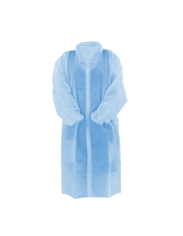 Bata de visita blanca PP 25gr es de polipropileno con cuello tipo camisa y maga larga. Desechable con cierre con velcro y empuñaduras para una mejor protección.