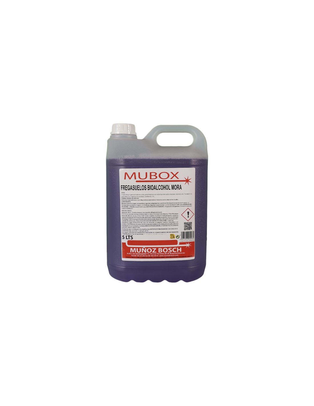 Fregasuelos con Bioalcohol Mubox ideal para limpieza y abrillantado de superficies, dejando una agradable sensación de frescor en el ambiente con su olor a mora.