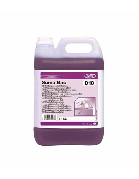 El suma Bac D10 es un detergente desinfectante altamente concentrado, desinfecta y limpia en un solo paso de superficies. Ideal donde se manipulen alimentos.