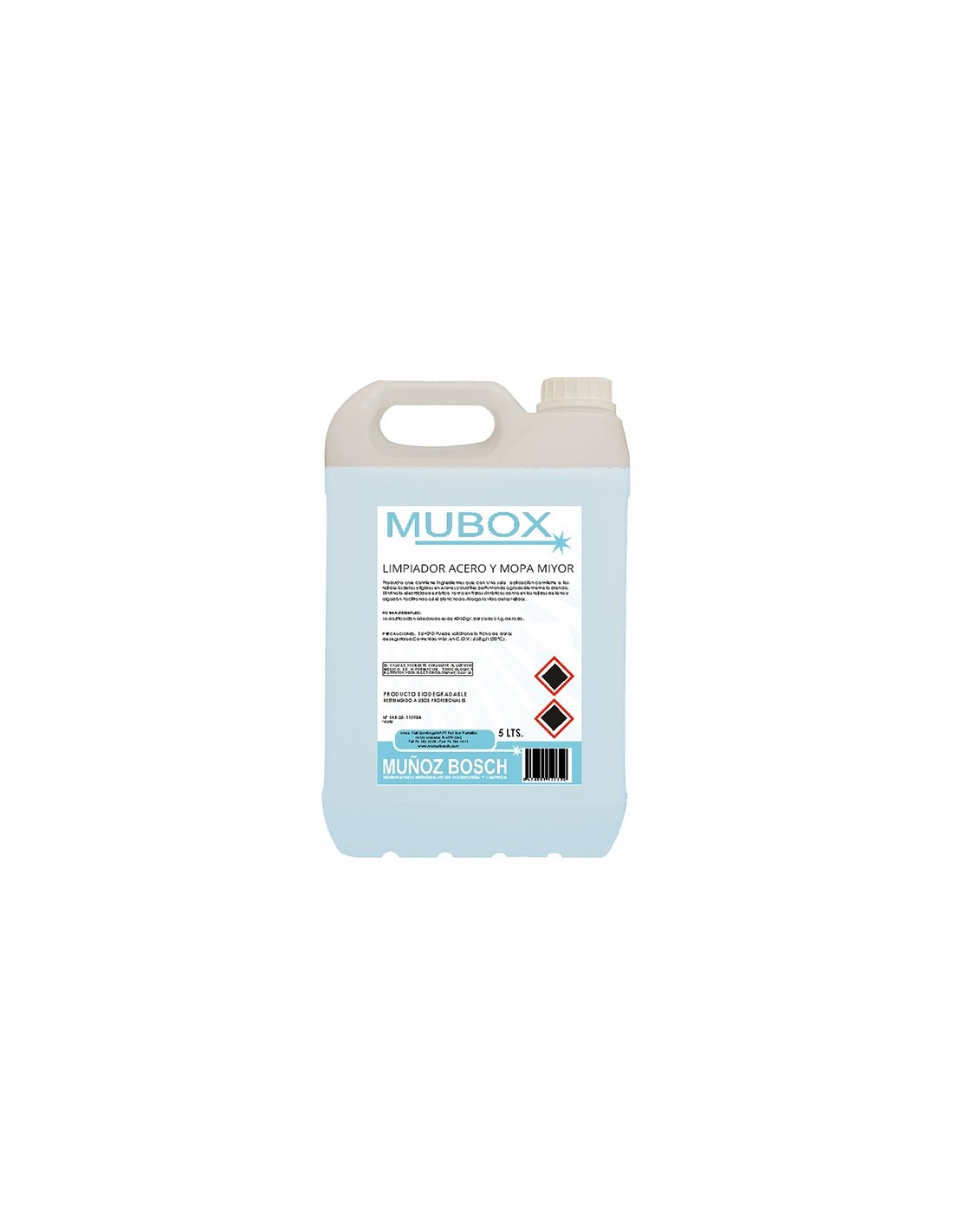 Limpiador de acero y mopa miyor Mubox devuelve el brillo a las superficies de acero inoxidable y elimina suciedad, manchas y marcas de la superficie. Indicado para usarse en superficies de acero inoxidable que no se utilicen en la preparación de comida, como las puertas del congelador, los carritos, la nevera y máquinas lavavajillas.