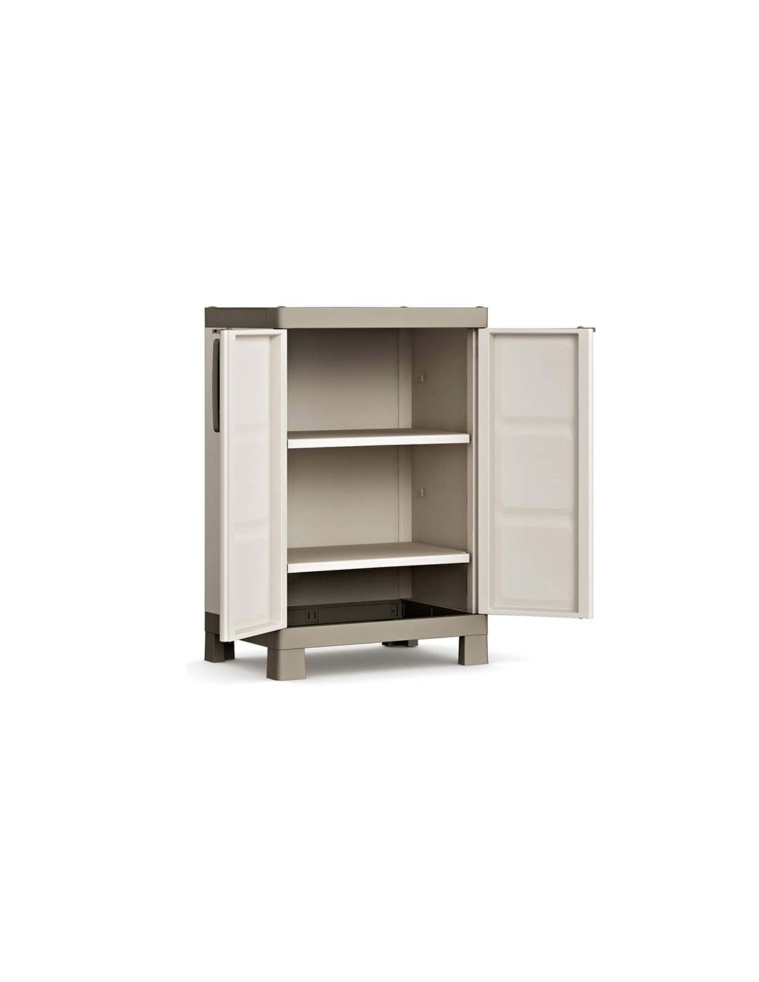 El armario resina bajo Excellence está fabricado en resina muy resistente, capaz de soportar la humedad y sin pérdida de color por el paso del tiempo. Armario resistente, duradero y muy práctico. ¡Perfecto cuando necesita un almacenaje amplio para poder ordenar y guardar sus productos, pero dispone de un espacio reducido donde colocarlo!
