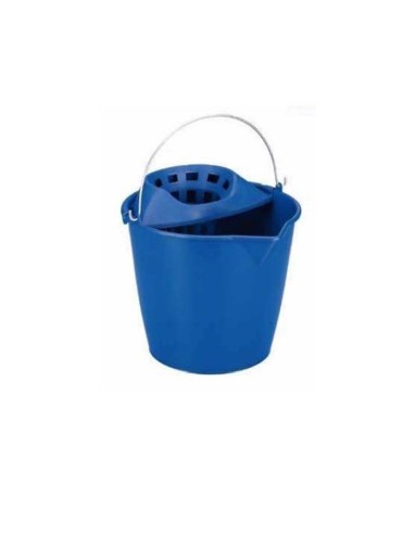 <p>Cubo redondo con escurridor de 12L capacidad. Acabado en plástico resistente de color azul, dispone de asa para un mejor manejo y trasnporte, facilitando sus tareas de limpieza </p>