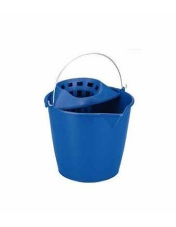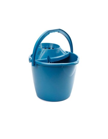 Cubo redondo con escurridor de 12L capacidad. Acabado en plástico resistente de color azul, dispone de asa para un mejor manejo y trasnporte, facilitando sus tareas de limpieza