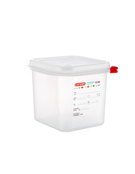 El contenedor hermético Araven GN1/6 es translúcido y lleva marcada una escala medición e indicador de medida. De fácil limpieza gracias a su diseño con los labios redondeados, muy resistente, práctico y cómodo.