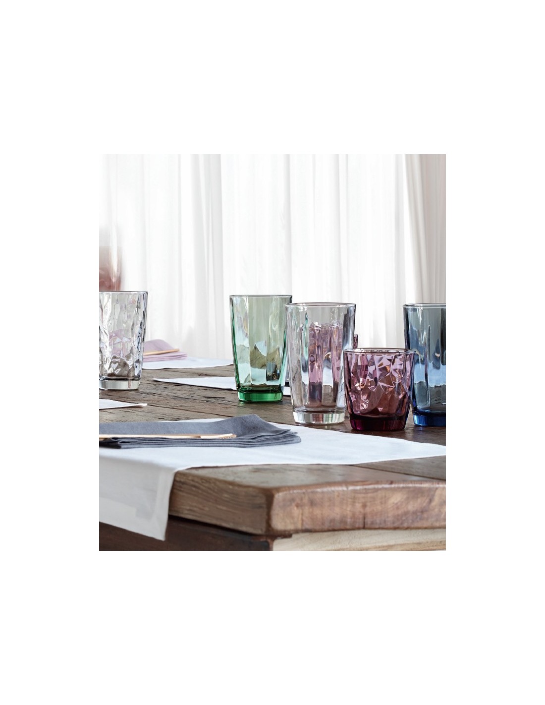 El vaso azul 38,5cl DIAMOND es un vaso que no pasa desapercibido. Sus dibujos triangulares inspirados en las caras de un diamante le otorgan un aspecto moderno y con estilo. Su desenfadado color azul invita a la alegría y hará que sus comensales se sientan como en casa. ¡Con estos vasos sorprenderá a sus comensales desde el primer momento!