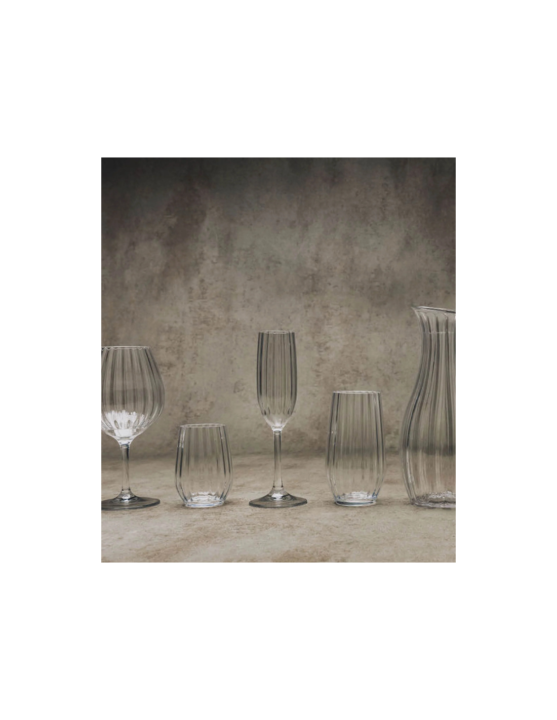 Su forma estilizada tipo flauta realza las burbujas y la presentación del champagne, cava, prosecco o cócteles espumosos, destacando su brillo y frescura. Las dimensiones de 47 mm de diámetro y 220 mm de altura aportan elegancia y una presencia impecable en mesa.