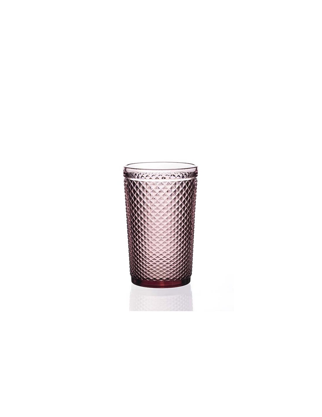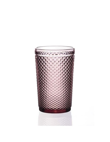 Vaso alto vidrio relieve vintage rosa 35cl con formas romboidales en sus paredes exteriores y con aspecto de diamante. ¡Vista con un toque de color sus mesas!