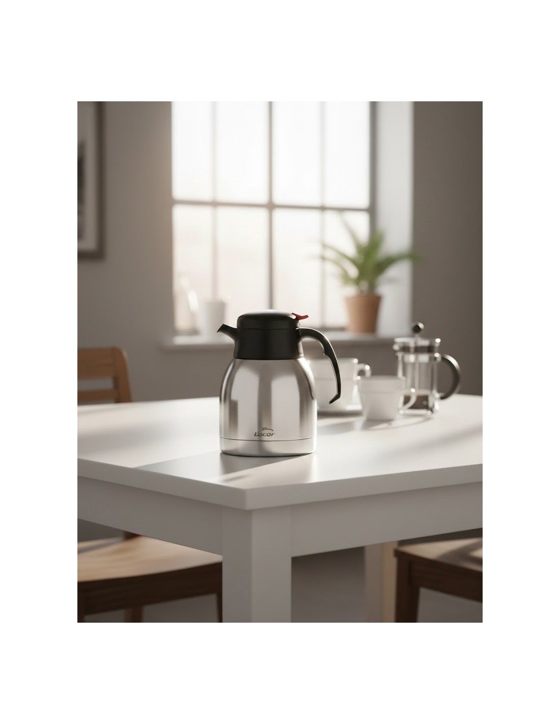 Este termo mantiene las bebidas calientes o frías durante unas 24 horas, ideal para cafés, infusiones, caldos o agua. Su capacidad de 2 litros lo convierte en una opción perfecta para buffets, caterings, desayunos de hotel o servicios de oficina. Además, es ligero, libre de olores y fácil de limpiar, garantizando máxima higiene y comodidad.