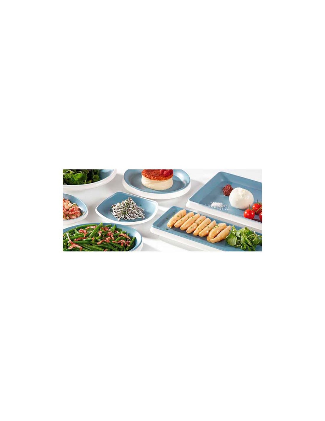 Acabado en color verde turquesa en su interior y con bordes exteriores en color blanco aportará un toque de frescura y modernidad a sus servicios de mesa. Además, es muy ligero lo que facilitará su trabajo gracias a su gran manejabilidad en el transporte de sus elaboraciones a la hora de presentar sus platos.