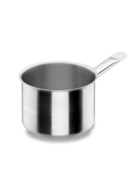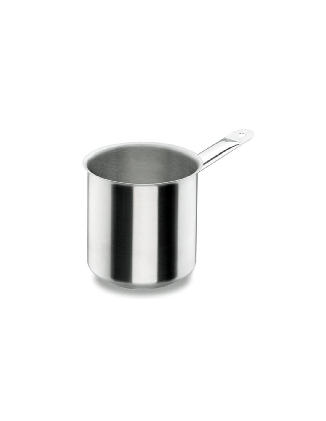 El cazo baño María con fondo está fabricado con acero inox 18/10, lo que es resistente al calor, golpes, corrosiones, ácidos y sales. Su fondo es termodifusor, lo que distribuye por todo el cazo el calor homogéneamente.