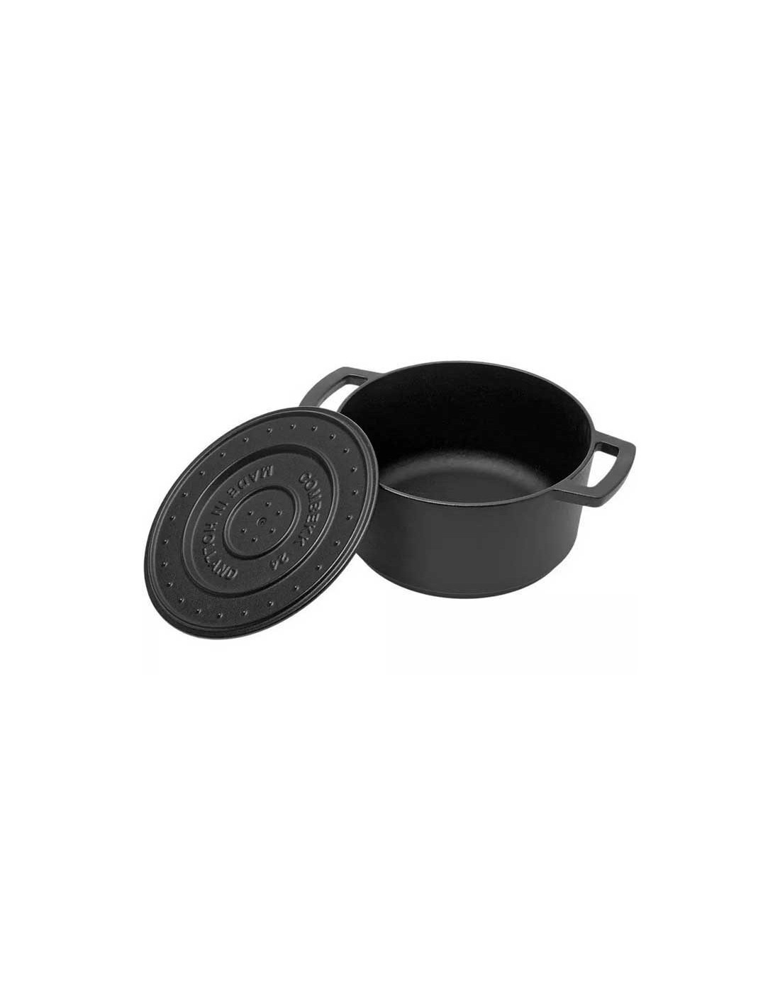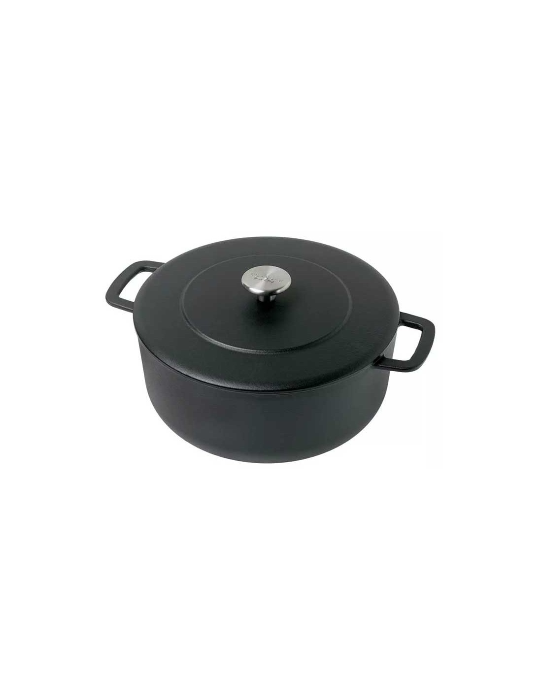 Cocotte hierro fundido negro es de materiales 100% reciclados y pomo de aluminio en su tapa. Diseño clásico para cocinar, asar, hornear, guisar o incluso freír.