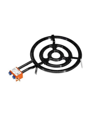El Paellero 3 aros Ø60cm exterior es un paellero tradicional de gas butano o propano para uso en exteriores. Posee 3 aros con 60 cm de diámetro exterior. Ideal para cocinar paellas grandes al aire libre. Potente, robusto y compatible con gas butano o propano.