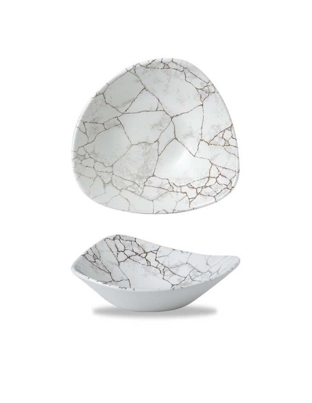 El Bol 25,3cm 60cl "KINTSUGI" (12uds) de Churchill es un cuenco de formas triangulares, resistente y duradero gracias a su decorado con vidriado que le otorga una capa protectora extra. Churchill aproxima oriente a occidente, aportando un toque de serenidad a sus mesas.