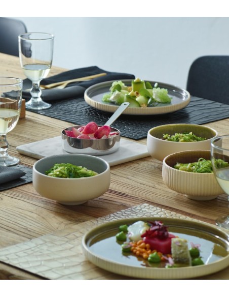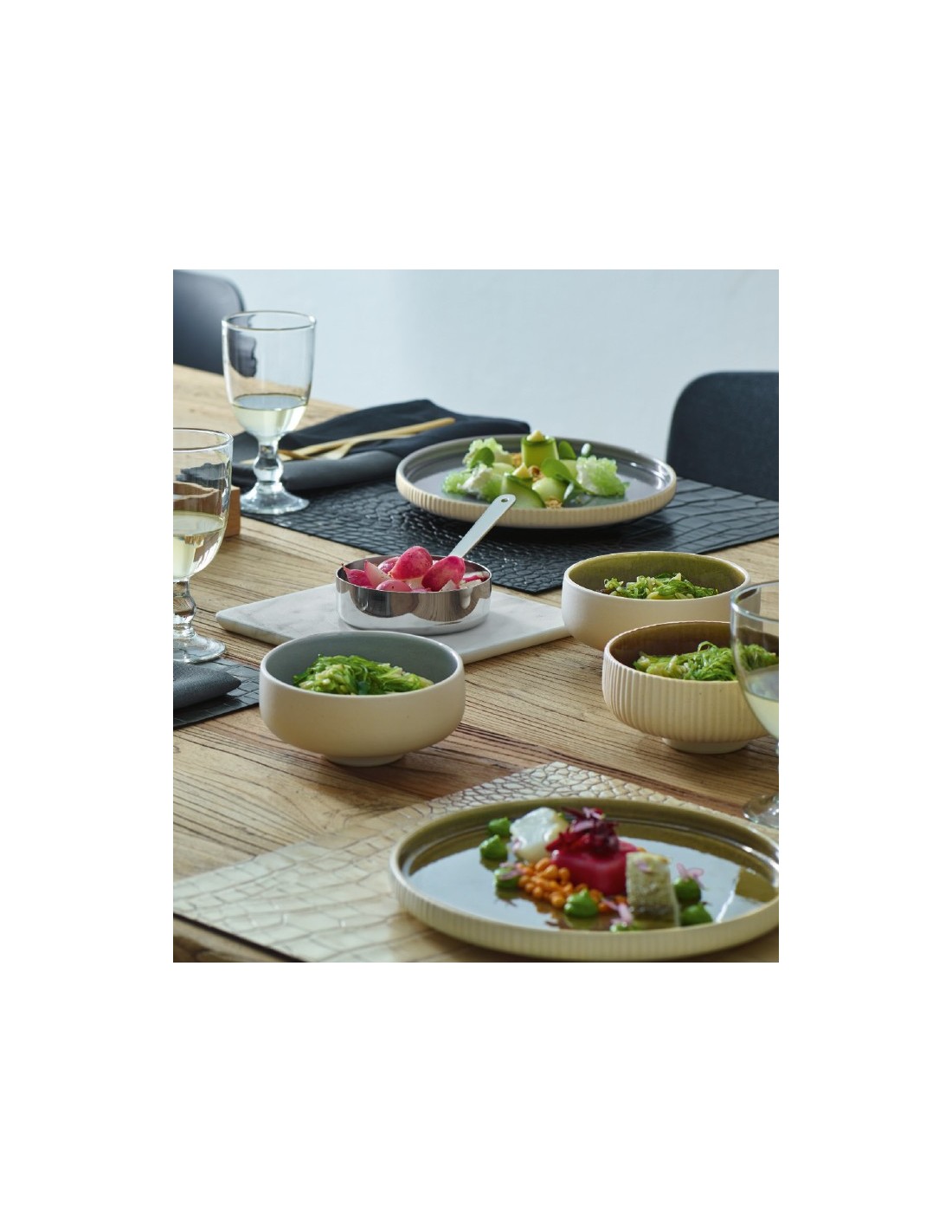 El bol redondo gris 21cm de la colección Nara está fabricado por Playground de Schönwald que en su producción combina gran cantidad de materiales como son gres, madera, pizarra, melamina, acero inoxidable, hierro fundido, cuero, mármol y vidrio que hace de su estética algo extraordinario y moderno y está inspirada en la naturaleza.