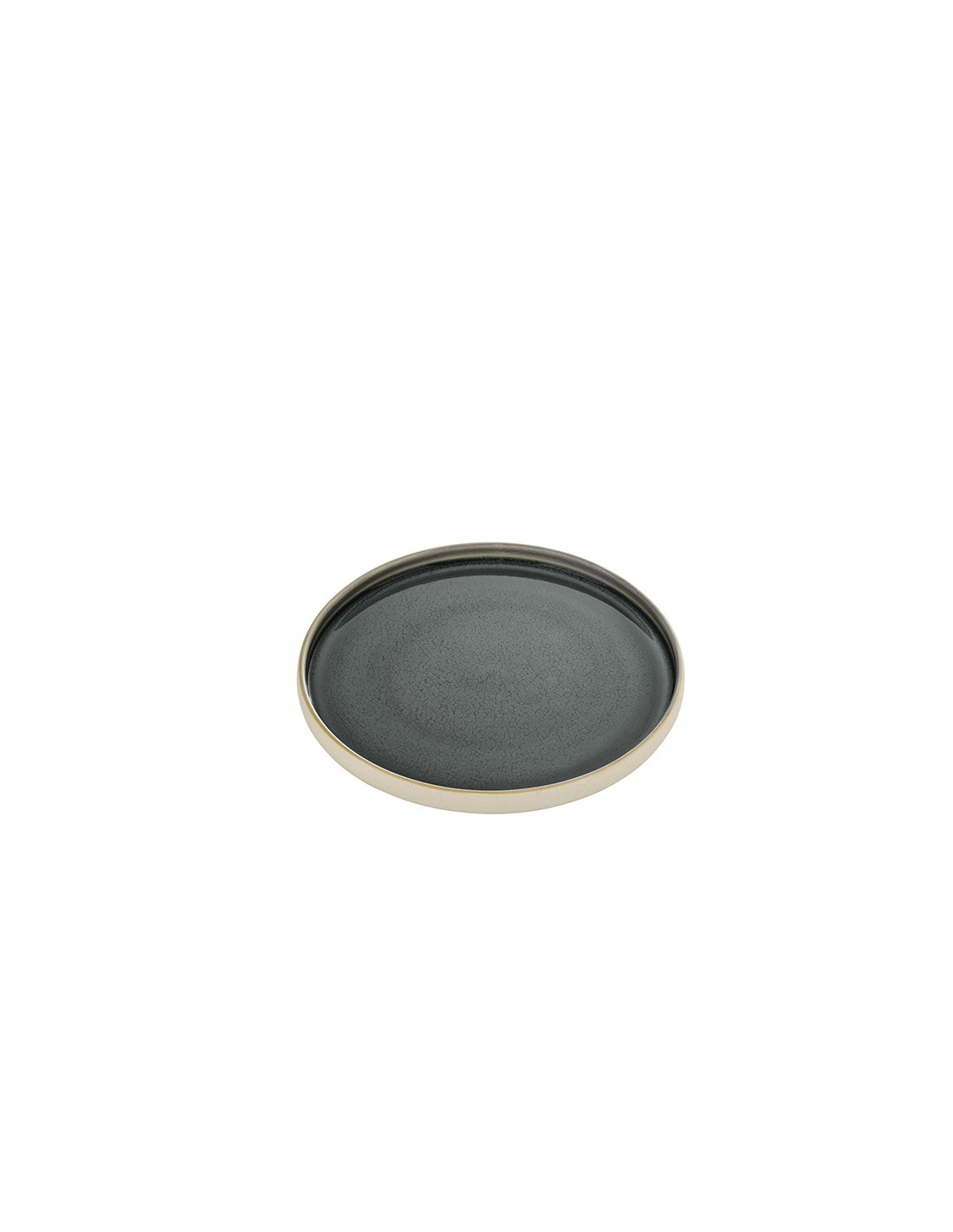 El plato llano redondo gris Nara de Playground-Schönwald es de gres, muy resistente, con diseño atractivo y con diferentes superficies interiores y exteriores.