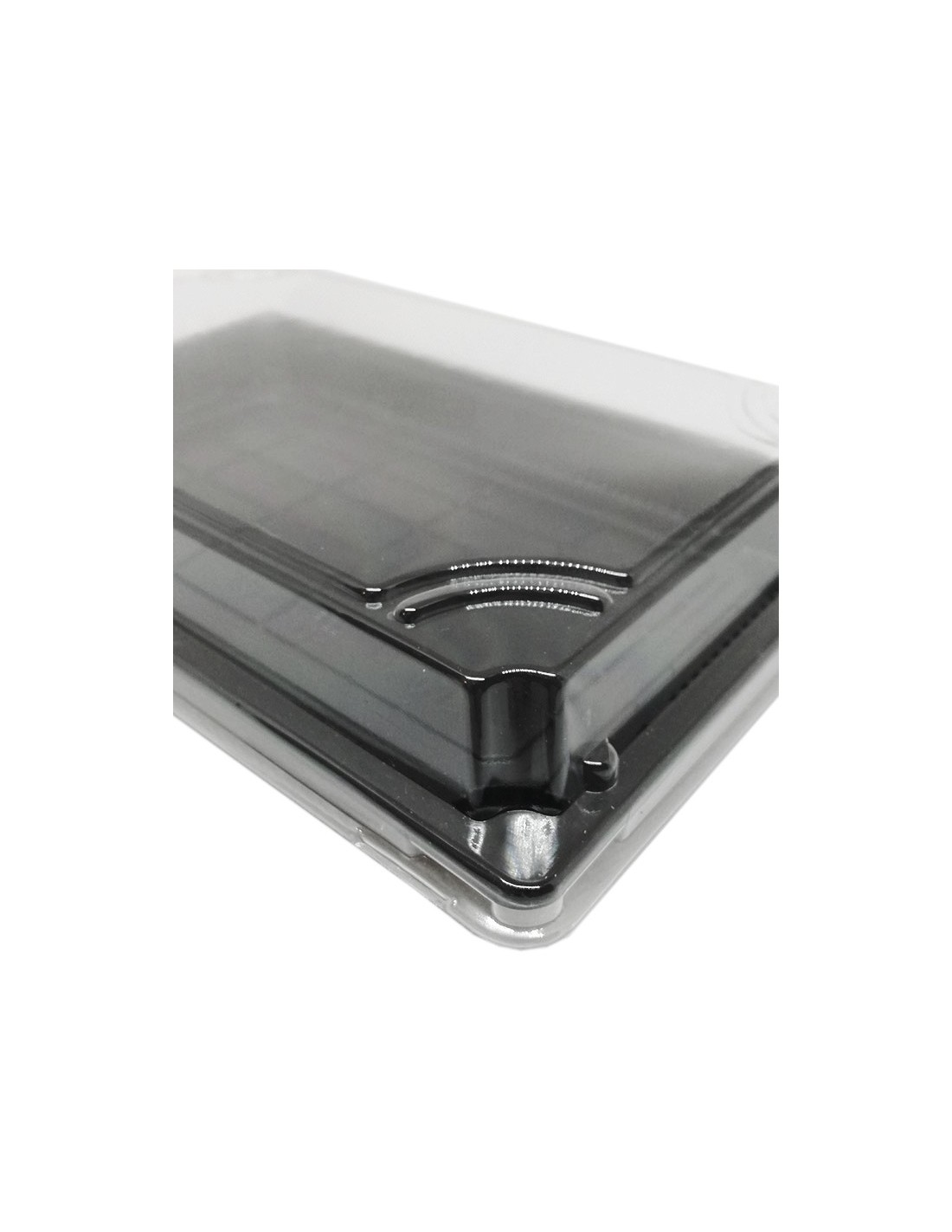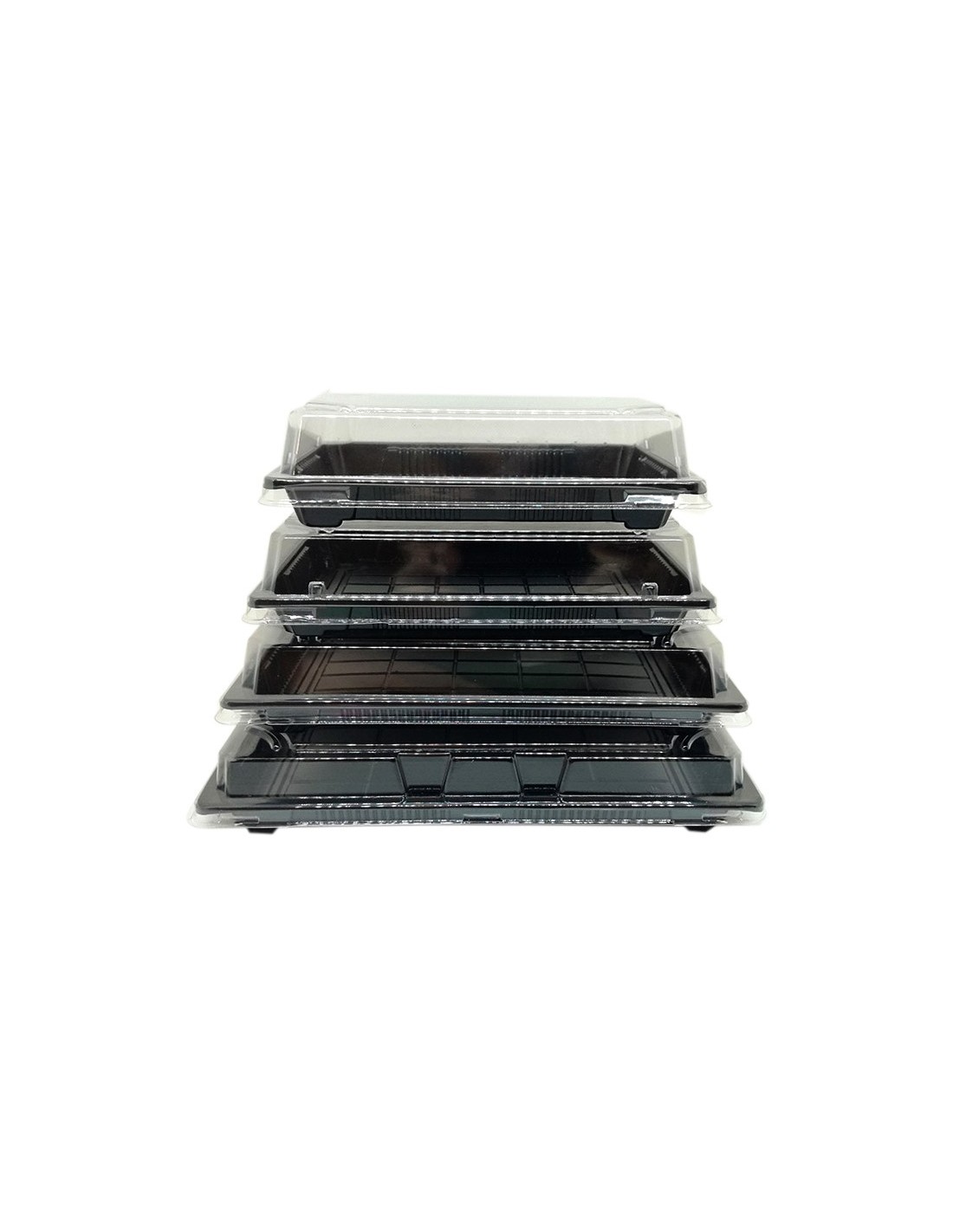 La bandeja Deluxe es de fondo negro y tapa transparente, lo que hace que la visualización del contenido sea perfecta. Además, incluyen tapa también transparente, por lo que facilitan su transporte, siendo este más seguro y ayuda a conservar los alimentos hasta la hora de disfrutarlos.