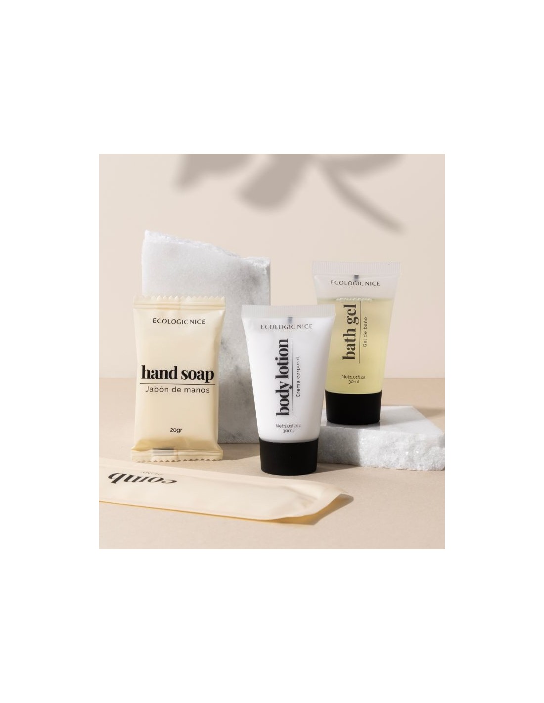 El Amenities champú en tubo ECOLOGIC NICE 30ml (300uds) se presenta en formato de 30 ml es perfecto para hoteles, spas, gimnasios y otras instalaciones que buscan amenities de calidad. Su envase es 100% reciclable, reforzando el compromiso ecológico del producto sin renunciar a una presentación elegante y profesional. Proporciona una sensación de limpieza duradera, siendo apto para todo tipo de cabello y para uso frecuente.