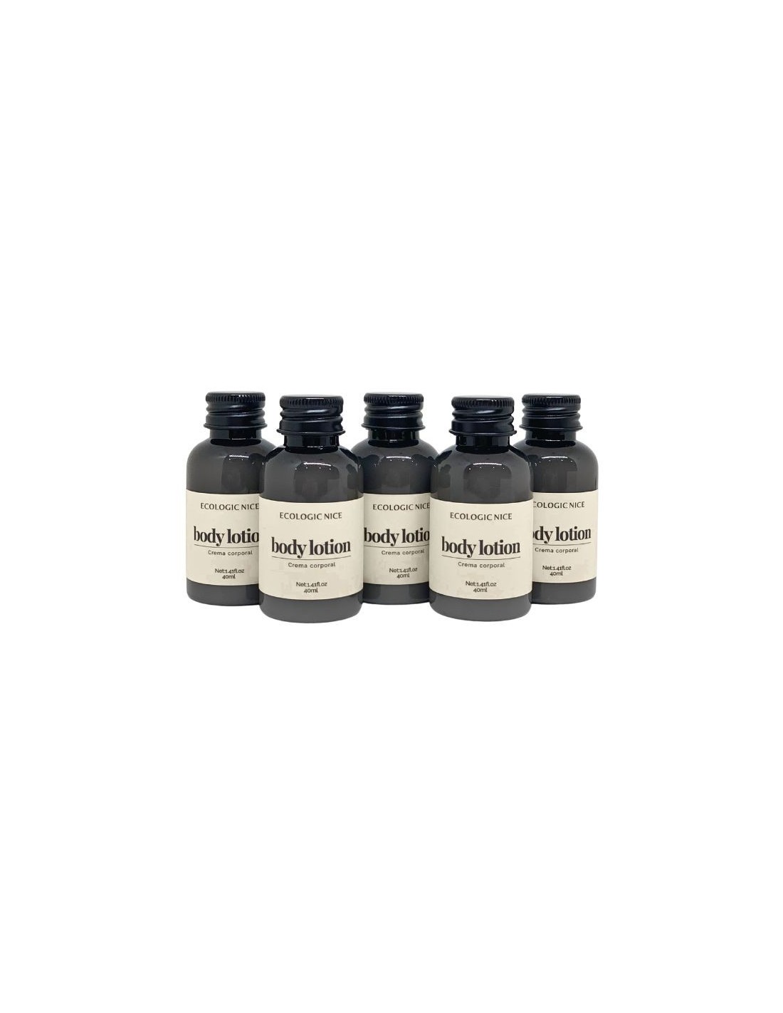 La Crema corporal ECOLOGIC NICE 40ml (200Uds) es un body milk que se presenta en formato individual de botella de 40ml de PET con tapón de aluminio, lo que es más higiénico y garantiza seguridad, comodidad y confianza en cada estancia, cumpliendo con los estándares de higiene hotelera.